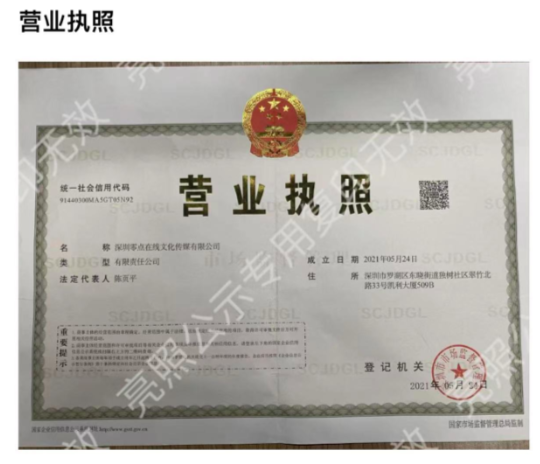 其中,中国黄金一诺专卖店营业执照上所显示的商家为深圳市一诺严选电子商务有限公司,中国黄金Chinagold零点在线专卖店账号关联小店的营业执照信息显示经营商家为深圳零点在线文化传媒有限公司。